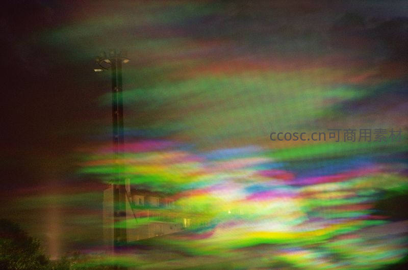 通过特殊拍摄手法,将城市灯光与极光般的色彩融合,形成流动的抽象光影,充满未来感与艺术气息。