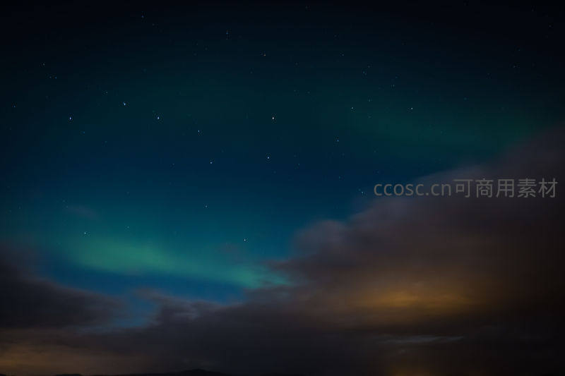 深邃夜空中,云层间隙透出幽蓝极光,如天幕轻纱,增添一份神秘朦胧的美感。