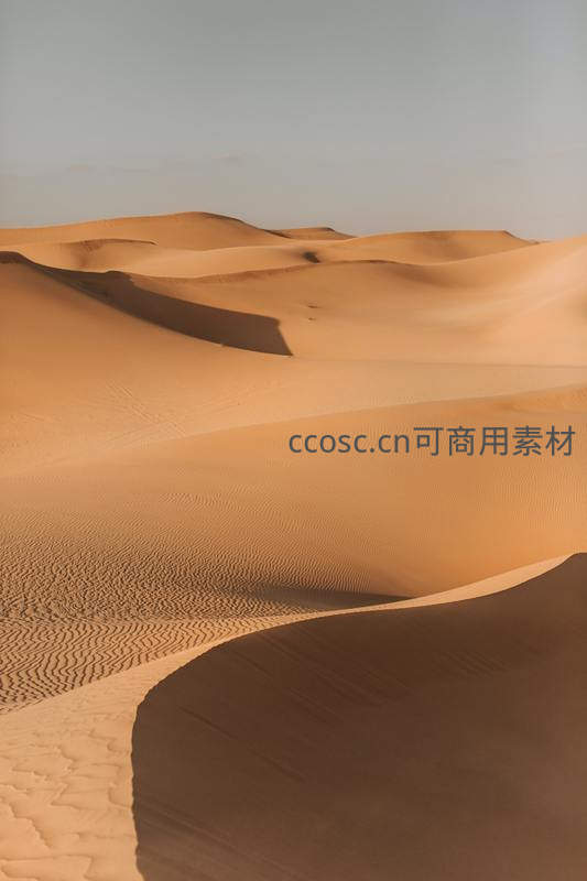 柔和的光线洒在连绵起伏的沙丘上,风塑造的细腻波纹如丝绸般铺展,展现大自然的鬼斧神工。