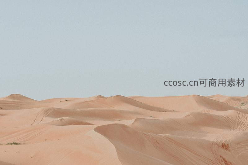 柔和的粉橙色沙丘在清澈蓝天下静静铺展,线条流畅优美,营造出一种空灵、纯净且令人沉思的视觉体验。