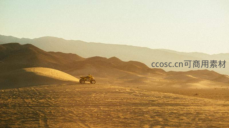 越野摩托驰骋金色沙海山峦间