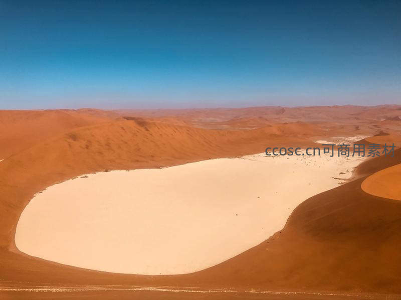 航拍视角下的沙漠奇景:白色盐湖镶嵌于红沙之间