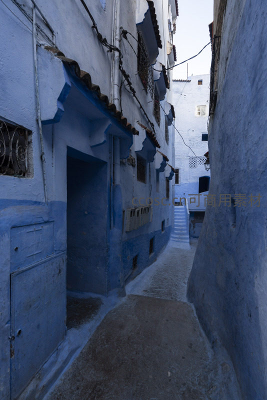 狭窄巷道中的蓝色迷宫,光影交错的神秘角落