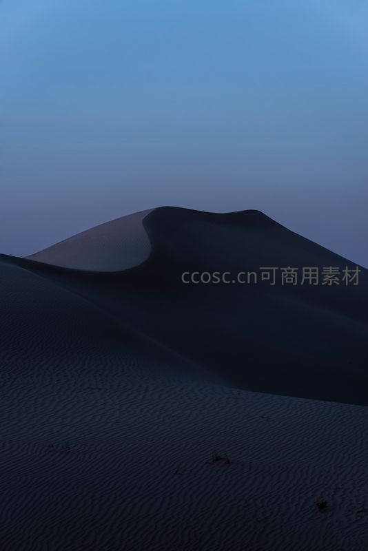 暮色深蓝笼沙丘,静谧曲线入梦乡