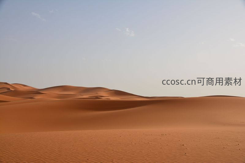 无边无际的橙色沙丘在湛蓝天空下连绵起伏,细腻的沙纹如波浪般延展,展现出沙漠纯粹而壮阔的自然之美。