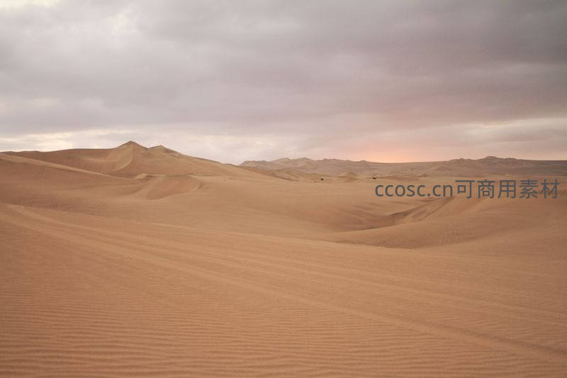 在厚重的阴云笼罩下,沙丘呈现出苍茫的色调,广阔的视野让人感受到大自然的雄浑与神秘。