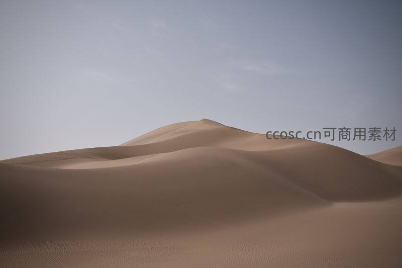 柔和的沙丘线条在淡蓝色天空下舒展,细腻的沙粒纹理清晰可见,营造出一种纯粹、宁静的视觉享受。
