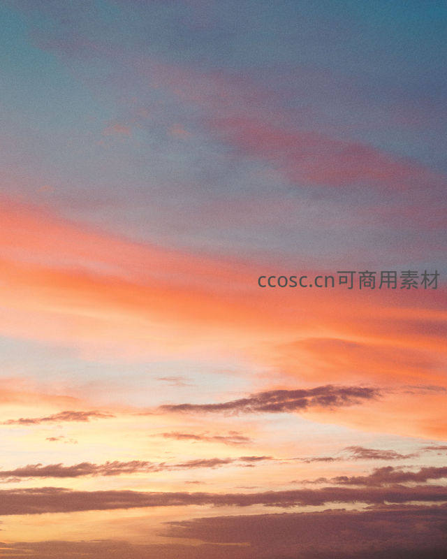 天空被落日余晖染成一片绚烂的橙红与粉紫,层层叠叠的云彩如画布般铺展,展现大自然无与伦比的壮丽与温柔。