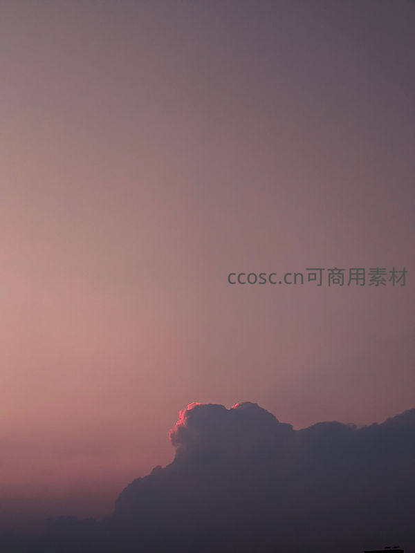 黄昏时分,天空弥漫着柔和的粉紫色调,一朵孤云静静悬浮,边缘被夕阳勾勒出明亮的粉红轮廓,静谧而富有诗意。