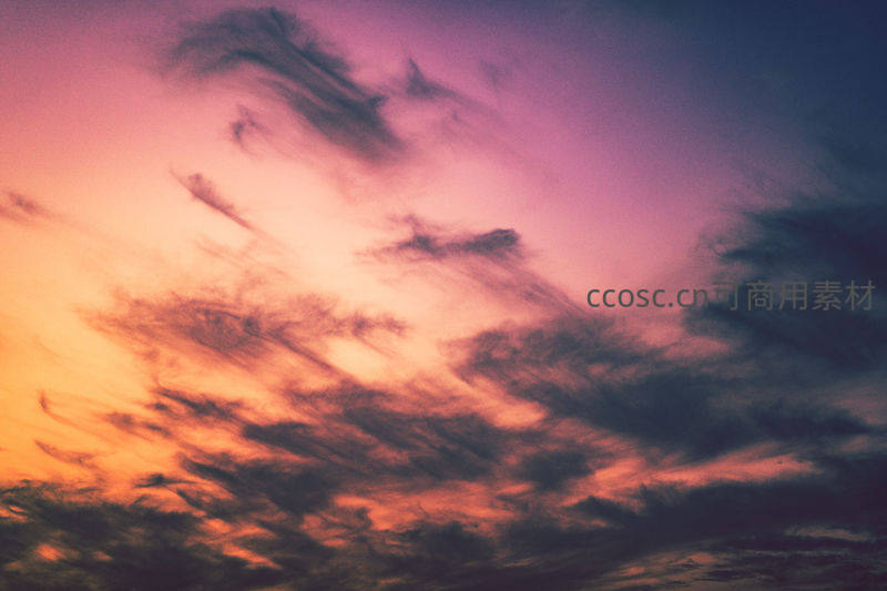 天空被渲染成梦幻的紫粉渐变,轻盈的云絮如丝带般飘舞,构成一幅温柔浪漫、令人沉醉的天空画卷。