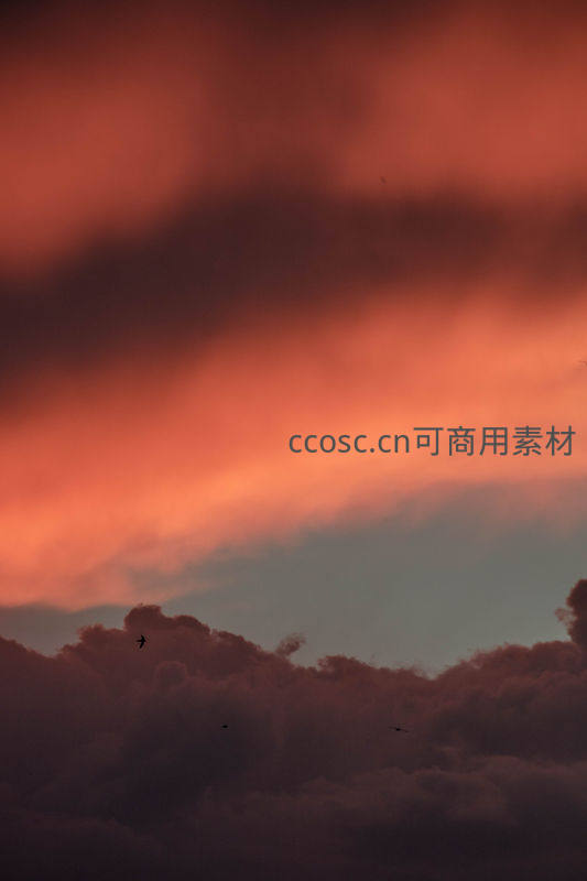 浓烈的火烧云铺满天际,几只飞鸟的剪影划过云层,为这幅壮阔的黄昏画卷增添了灵动的生命力与诗意。