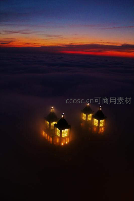 云海之上灯火通明小屋