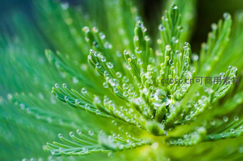 绿植尖端露珠,晨曦中晶莹剔透