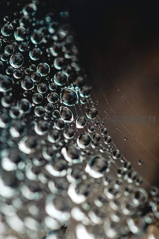 微距镜头聚焦于一张布满水珠的蛛网,每一颗水珠都如宝石般剔透,折射出迷人的光影,展现微观世界的奇妙。