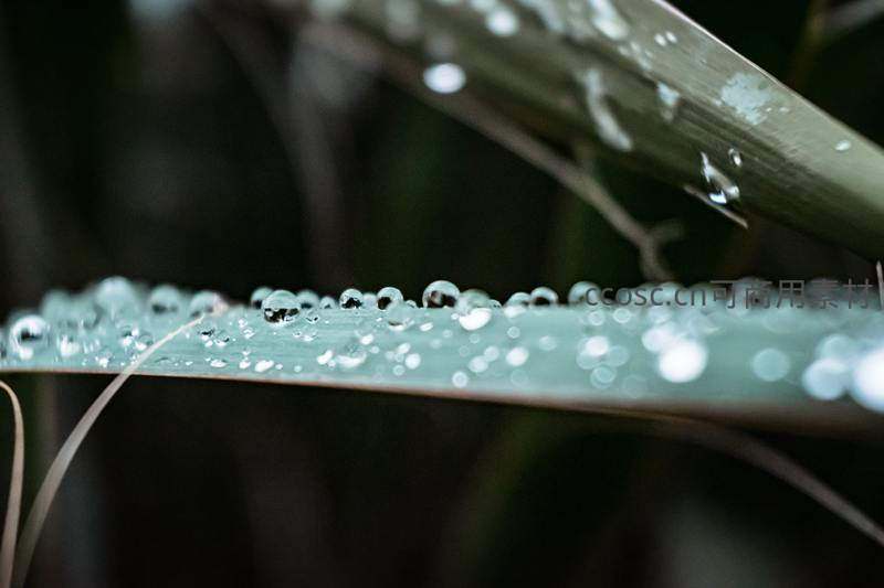 竹叶上的晶莹水珠特写