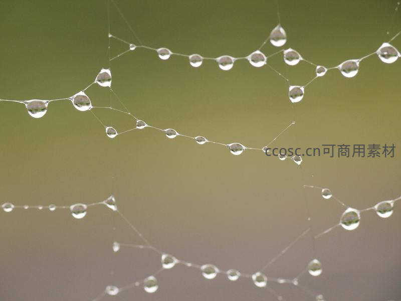 细密蛛网承载着颗颗圆润露珠,如天然项链般悬垂,在柔和晨光中闪耀着清透的光泽。