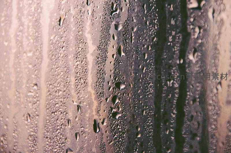 雨滴在玻璃上凝结滑落,形成纵横交错的水痕,模糊了窗外世界,营造出静谧而略带忧郁的室内氛围。