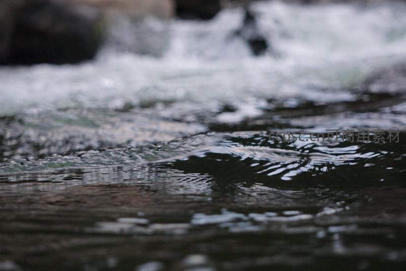 溪流湍急水面的动态波纹