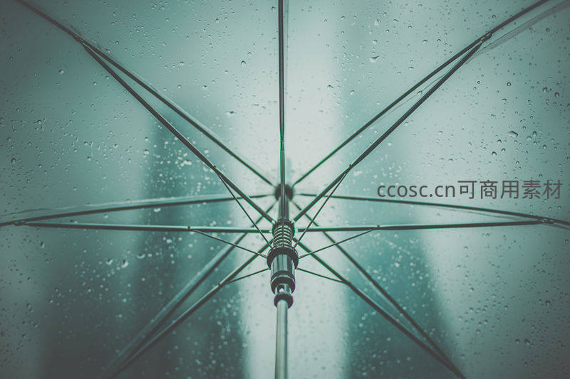雨中透明伞骨结构仰拍视角