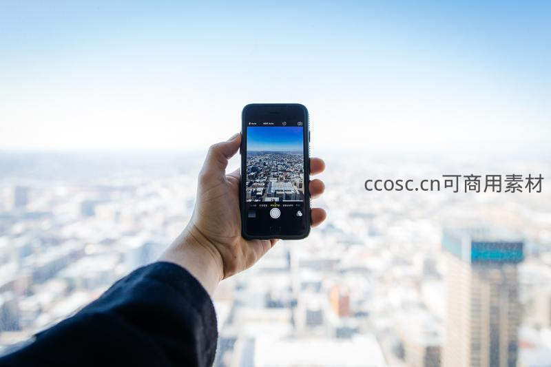手持手机俯瞰城市全景记录瞬间
