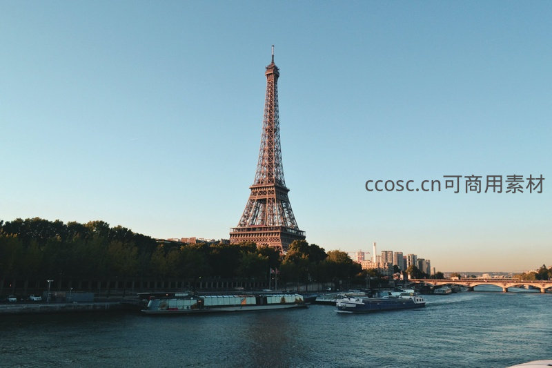 金色阳光洒在塞纳河面,几艘游船静静停泊,背景是雄伟的埃菲尔铁塔,构成一幅充满诗意与活力的巴黎画卷。
