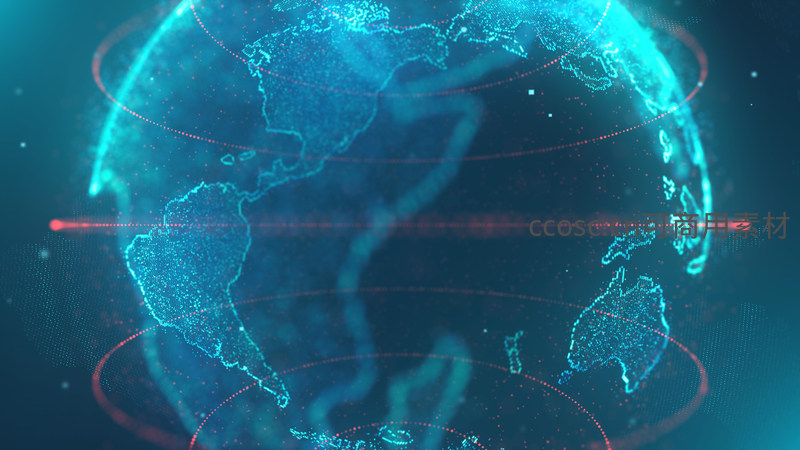 以蓝色粒子构成的地球模型,红色数据线在周围流动,营造出充满动感与科技感的全球化数据交互场景。
