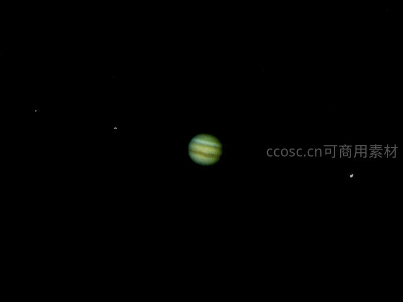 望远镜下模糊的木星及其卫星