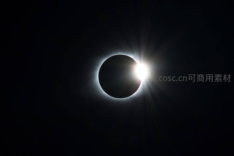 月球完全遮蔽太阳时,其边缘透出耀眼的日冕光芒,营造出震撼而神秘的宇宙景象。