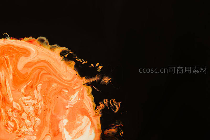 炽热的橙红色与深邃的黑色激烈碰撞,仿佛熔岩喷发或宇宙星云,充满原始的能量与视觉冲击力。