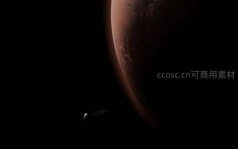 火星与卫星的深空剪影
