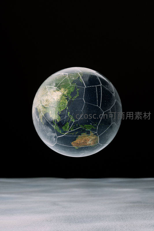 裂纹地球模型悬浮于月面