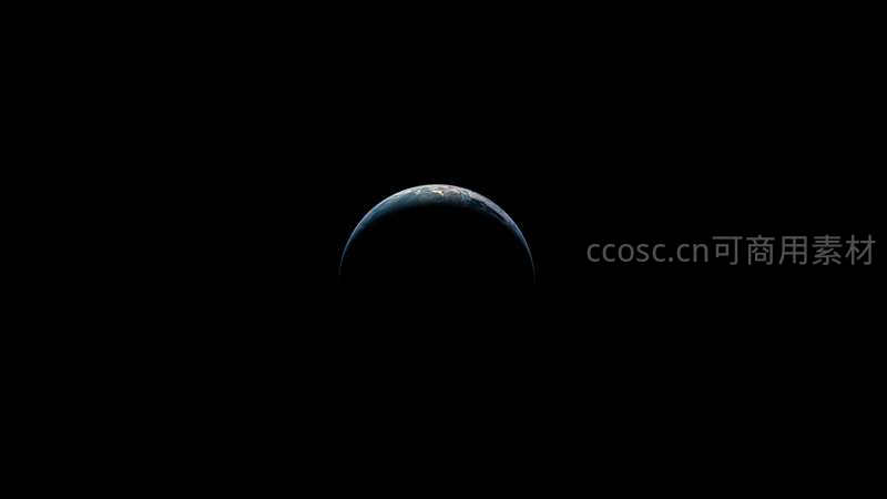 在无垠的黑色宇宙中,地球仅以一道微弱的弧光显现,营造出一种孤寂而庄严的宇宙美感。