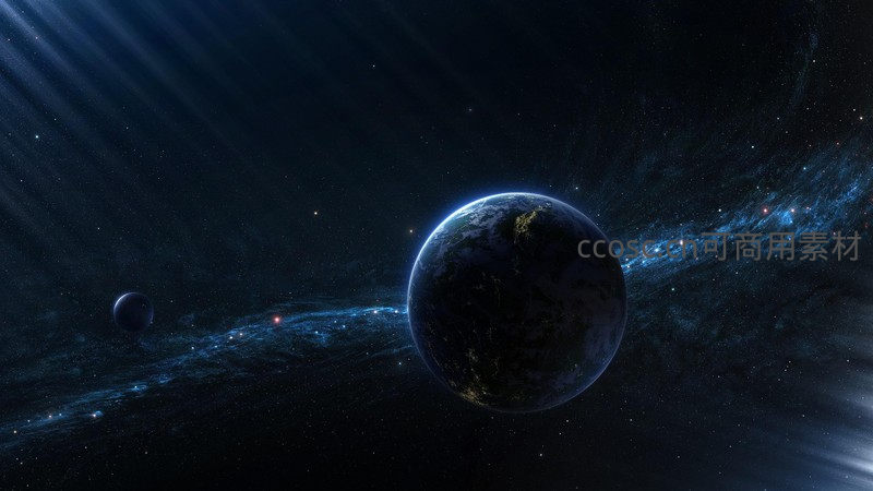 在璀璨银河与遥远星系的映衬下,地球如一颗明珠悬浮于无垠宇宙,展现人类家园的渺小与壮美。
