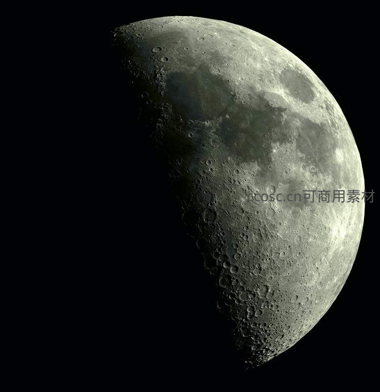 近距离捕捉月球表面,环形山与月海纹理分明,明暗交界处光影对比强烈,揭示了这颗卫星古老而荒凉的地质历史。