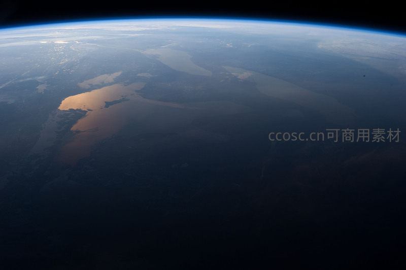 晨曦中地球弧线与湖泊倒影交相辉映