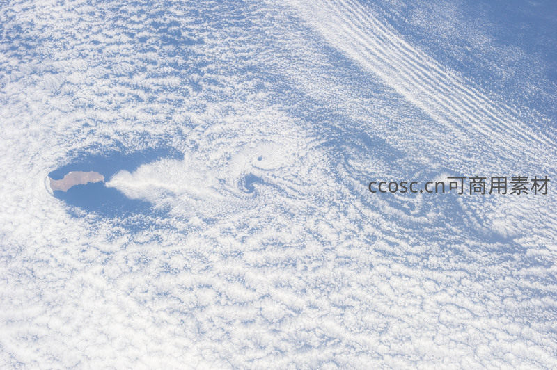 如画般的云海中,一座孤岛若隐若现,周围云纹旋转流动,仿佛大自然在天空绘制的抽象艺术作品。