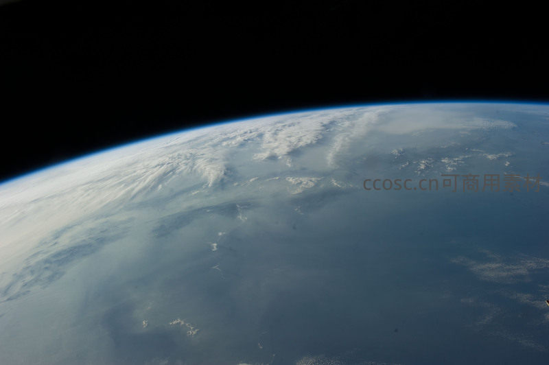 从外太空捕捉地球大气层边缘的柔和蓝光,云层如薄纱般飘浮,彰显这颗星球生命的脆弱与美丽。