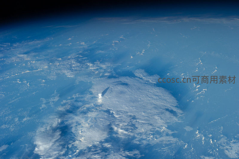 纯净的蓝色天空中漂浮着朵朵白云,地球的弧度清晰可见,尽显宇宙中的宁静与辽阔。