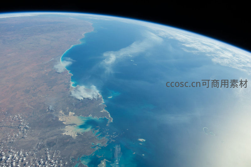 从高空俯瞰,蜿蜒曲折的海岸线将棕褐色的陆地与清澈湛蓝的海洋清晰分割,展现出大自然鬼斧神工的杰作。