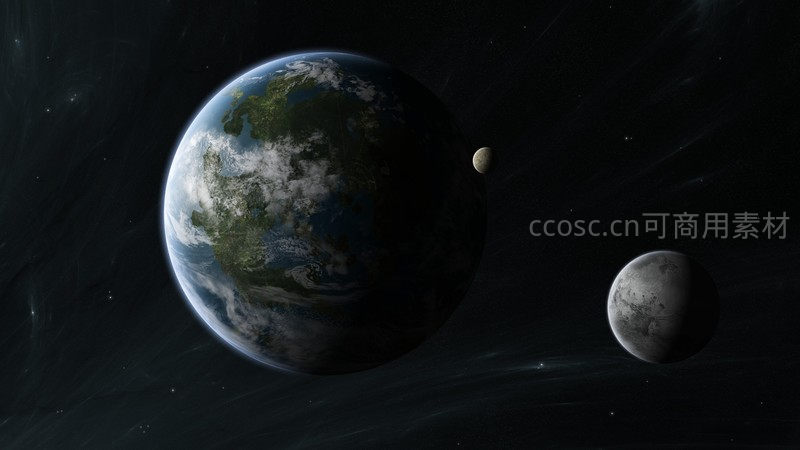 从太空视角俯瞰,蔚蓝的地球与灰白的月球并列于漆黑背景中,展现人类家园与天然卫星的和谐共存。