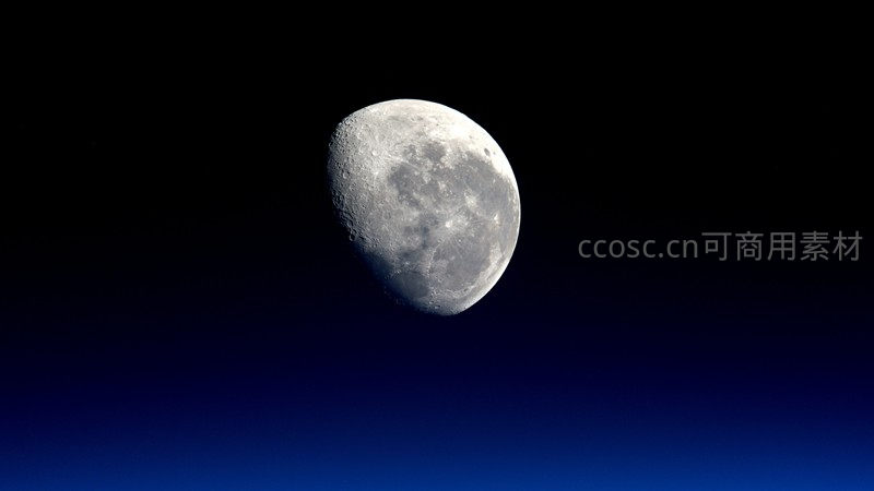 一轮明月高悬于地球蓝色大气层之上,背景是深邃的宇宙,营造出一种宁静而宏大的空间感。