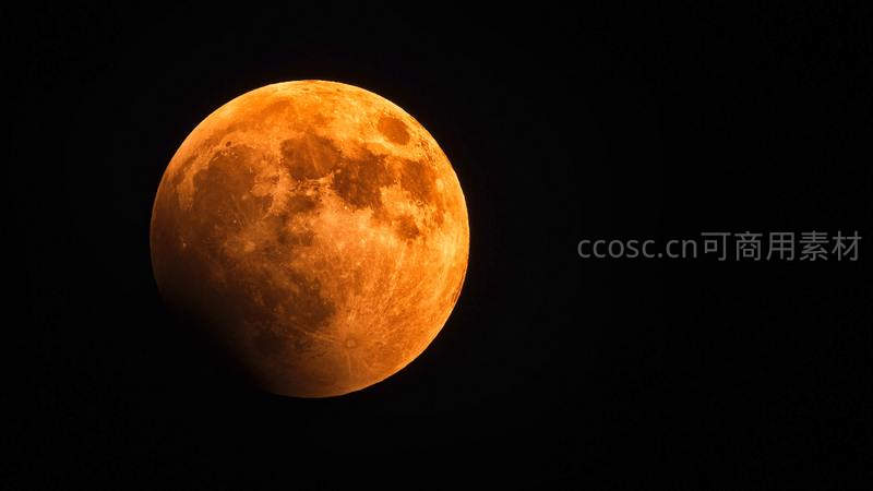 一轮血红色的满月在漆黑的夜空中静静悬挂,其表面纹理清晰可见,散发着神秘而庄严的光芒,令人敬畏。