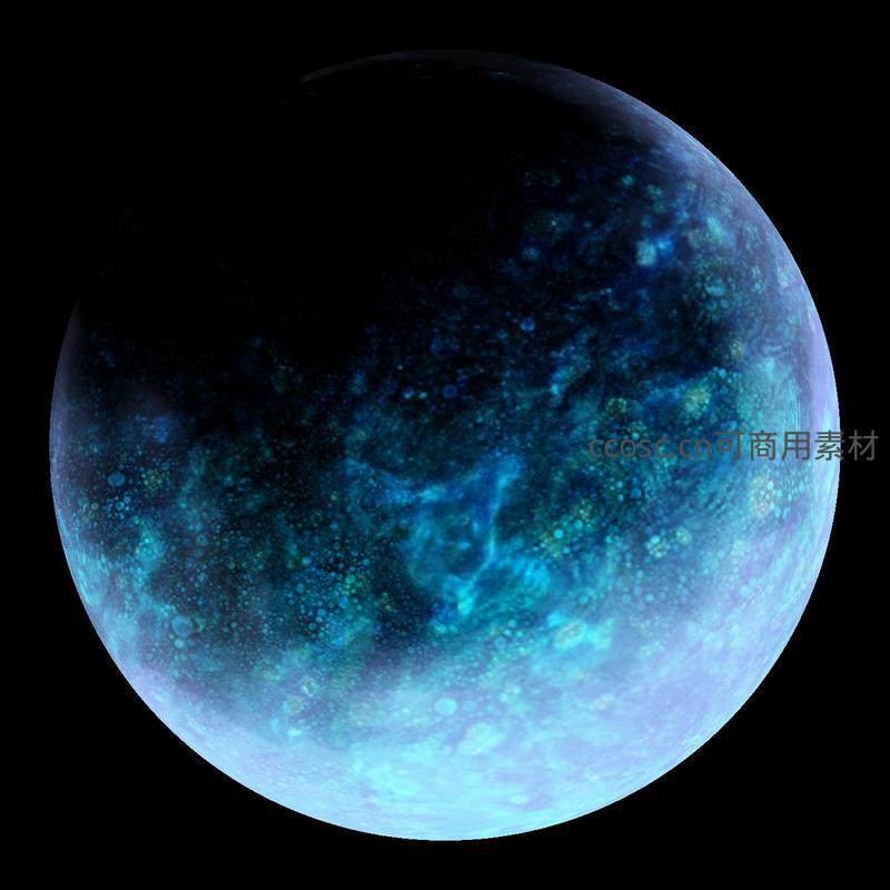 一颗被神秘蓝色光芒笼罩的冰封星球,表面纹理如深海般幽邃,散发着未知的寒意。
