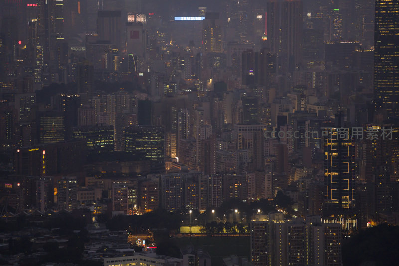 夜幕笼罩下的香港都市天际线,灯火如星海般璀璨闪烁