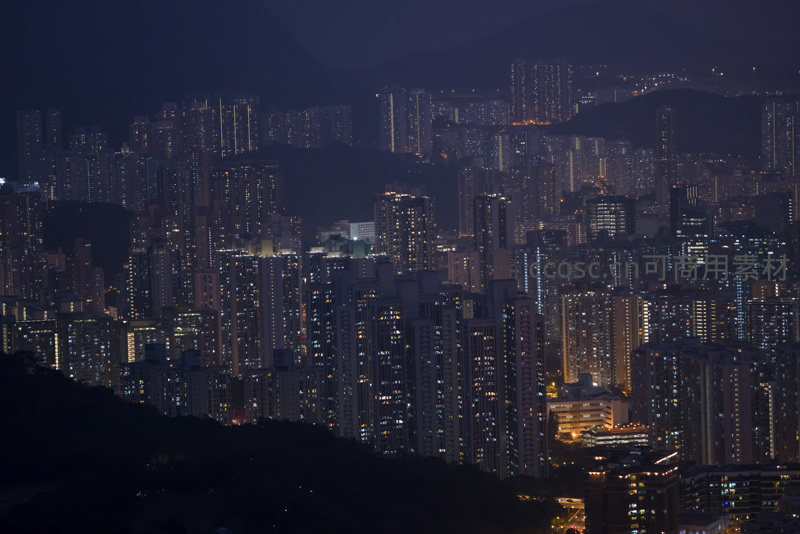 远眺香港夜景全景,山海城一体,万家灯火点亮东方之珠