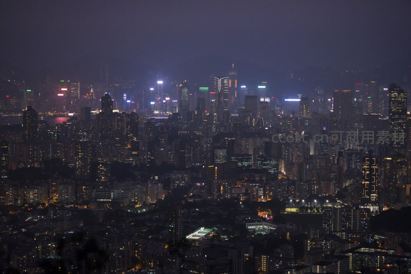 香港夜景航拍:维港两岸灯火璀璨,高楼林立如星海