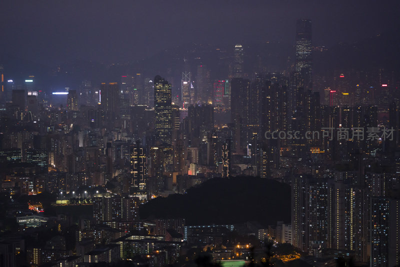夜幕下的香港中环金融区,霓虹与暗影交织的都市交响