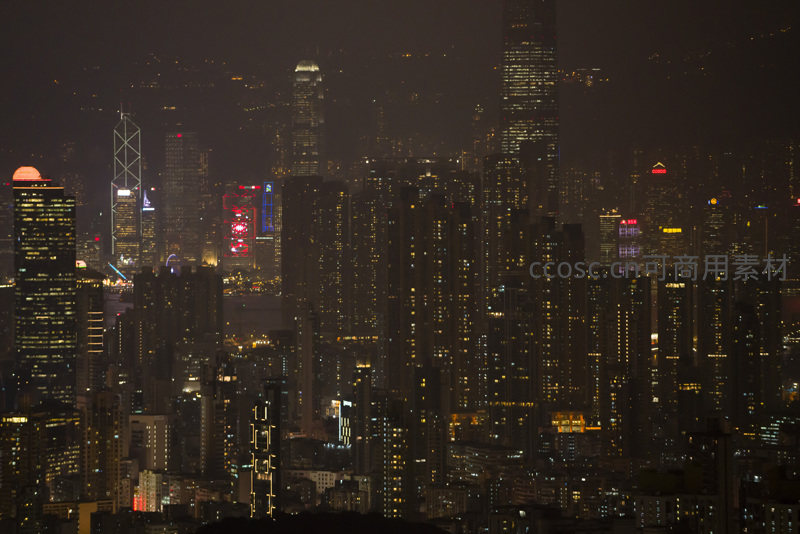 港岛核心商务区夜景长焦拍摄,密集楼宇灯光织就光之森林