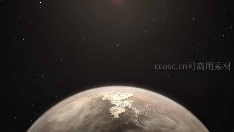 在无垠的星空背景下,一颗星球的弧形地平线静静浮现,表面斑驳的亮区暗示着文明或地质活动,营造出静谧而深远的宇宙感。