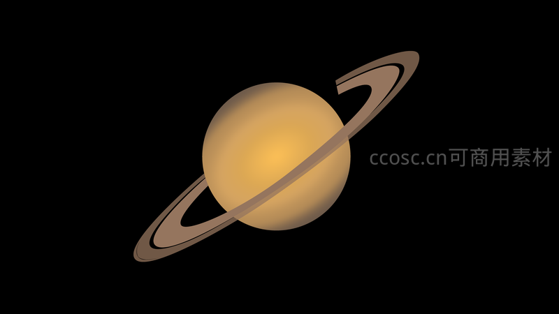以极简卡通风格描绘的土星,金黄色球体配以清晰的棕色环带,背景纯黑突出主体,适合用于天文科普或儿童教育素材。